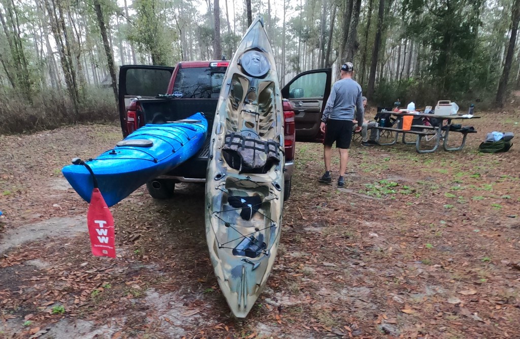 We finally rescheduled the trip for February 2021 and drove to Owl Creek. The three paddlers were Rick Ashton, Jay Etheridge and myself. Once we set up camp at Hickory Landing we drove two trucks to Apalachicola and had dinner. We left one truck in Apalachicola and drove one truck back to the campsite. This allowed us to have a vehicle at the end of the trip and to drive the three of us back to the starting point.