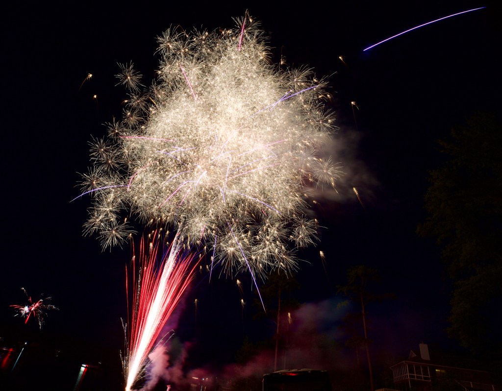 And as the sun began to set, the skies cleared and the rain stopped. The temperature was cool and it was a perfect evening for a July 4th Fireworks show on the lake!