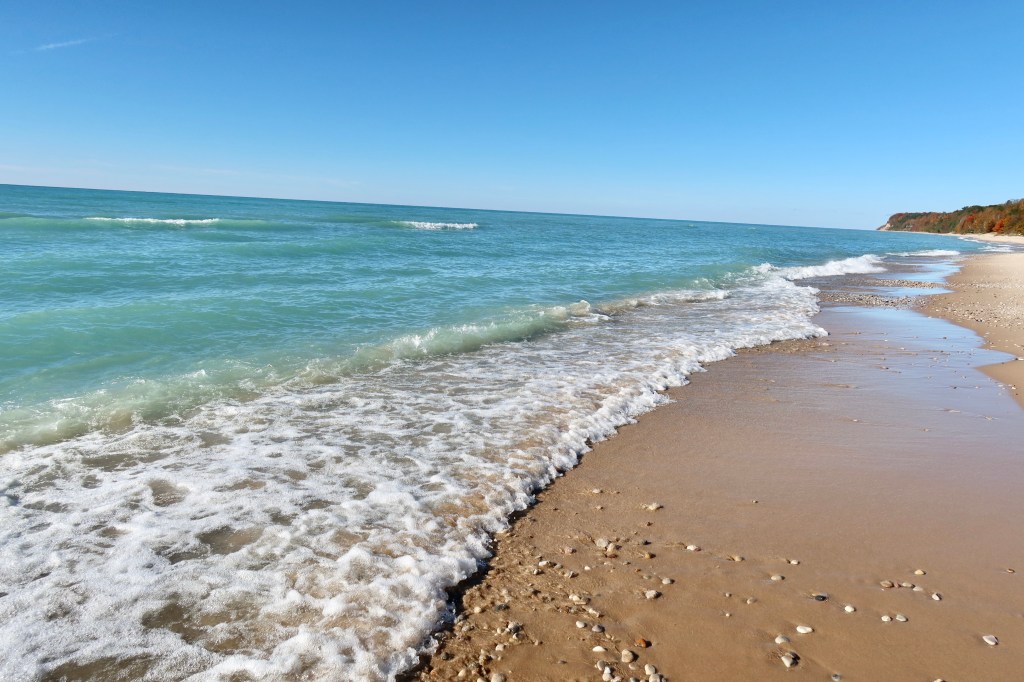 As the weather finally calmed we were able to get down onto the beach along Lake Michigan and do some walks. The water was clear, emerald green and very similar to the water in the Caribbean. I wanted badly to swim but I knew I’d suffer if I did because it was freezing cold. The lake could very well freeze over in a couple of months!