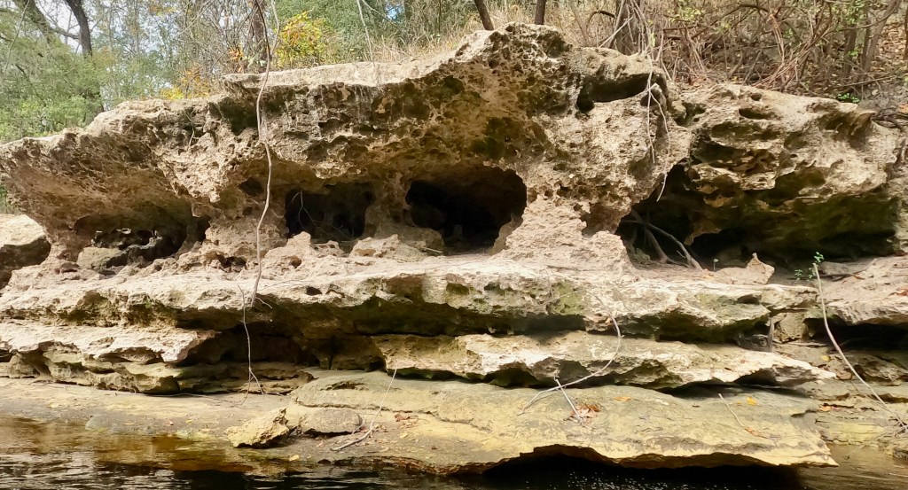 Shortly before noon on day 2 a big whitetail buck flew down the eastern bank of the river and with one huge leap hit the river. He was on a mission as if swimming for his life. I paddled close to him in order to take a few photos, trying not to get too close, but he spotted me and turned back. I backed off all the while taking photos. Unfortunately, he swam into a large, downed oak tree in the river and got trapped. He desperately fought to get over the tree and finally made it. Once away from the tree, he swam to the shore and climbed the bank and ran south. Having seen little wildlife on the trip this was an exciting occurrence!