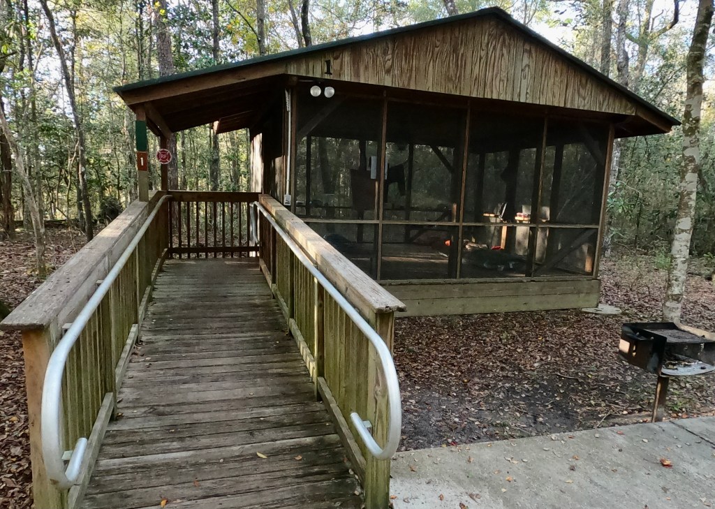 With day 1 in the books, the paddlers pulled into the first stop of the trip, Dowling Park River Camp. These river camps are state run camps only accessible by the river. There is a camp host at these sites who oversees and maintains the properties. The camps are free but you do have to make reservations ahead of time. They are a very welcome sight to weary paddlers. They have restrooms and bath houses with hot/cold running water. They have picnic tables and screened in houses to sleep in. They could not be nicer!