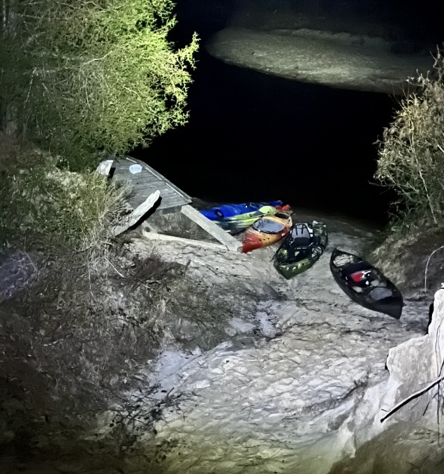 Debating on whether to camp on a sandbar or a beautiful river bluff the decision was made to camp on the bluff. Paddlers picked out their campsites, tents were pitched and hammocks hung. Paddlers made supper out of Mountain House meals and gathered firewood and built a fire. Soon it was time for sleep but not before paddlers were serenaded by 2 packs of ‘yotes in the river swamp. The waning moon was not long from full and the clear cold night was beautiful with the moon and stars above illuminating the river basin.