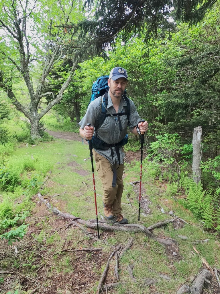 On day 2 the team entered the Grayson Highlands State Park. This is a beautiful and very large park. Horses, ponies and cows have been placed in the park to keep the plant growth in check. We encountered multiple animals throughout the park. They were not the friendliest of animals but they didn’t run either. We kept our distance because no one wanted to be bitten or kicked. We also had to watch where we stepped! As we hiked thru the park we encountered multiple gates that we closed behind us. (That’s the rule!)