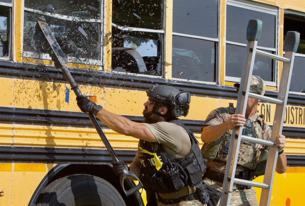 We remain forever grateful that during a hot August afternoon these dedicated professionals brave the late summer heat to prepare themselves for events such as a hostage situation on a school bus. Hopefully they will never have to use this training in a real life scenario but if they do they will be ready……Thank You gentlemen…