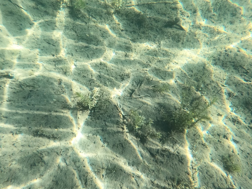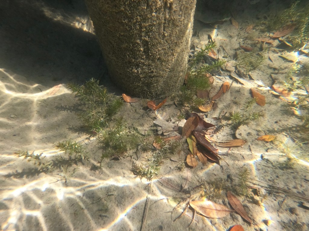 I continued paddling north and did not see anymore Hydrilla until I came upon a dock with two holes underneath it in about 2ft of water. A small amount of Hydrilla was spotted in both holes.
