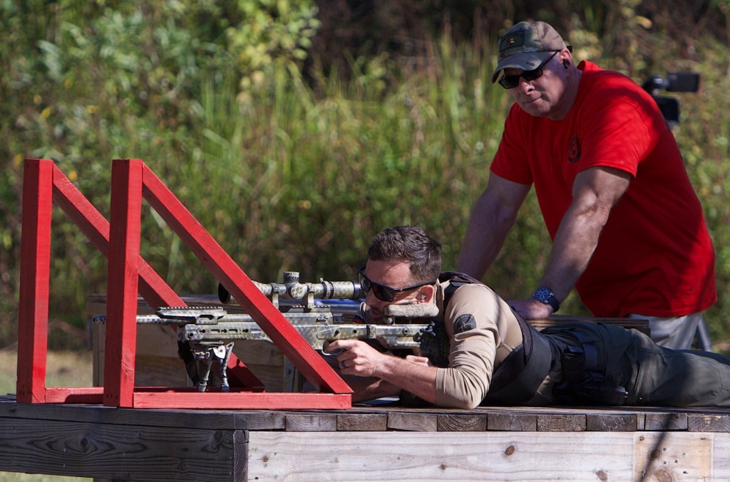 The Korean National Team begins the competition by crossing this rope and running to the range. These guys were incredibly fit finishing first on the Obstacle Course competition! After completing the shooting drill, teams still must carry an injured teammate across the finish line to stop the clock! The sniper must hit a small target (about the size of a golf ball) at one hundred yards before his team can proceed. The judge (red shirt) watches his every move. If the sniper misses his first shot, he can shoot one more time. If he misses again, his team is heavily penalized. The Judges at the Roundup don’t miss a thing! Dancin’ with the one who brought ya! Teams must traverse a variety of obstacles before shooting. All events are timed and any procedural error will cost ‘ya 30 seconds…Operators are challenged to shoot thru, over and under a variety of barricades after running and traversing obstacles. It ain’t easy! Runnin’ and gunnin’! The judge monitors the contestant using a stopwatch…Breathe!Tallahassee Police Officers finishing the Hostage Rescue competition! Makin’ it look easy…..it ain’t! Teamwork!Up & over! RooftopClimbing!Go! TPD Operator Wayne Staats discusses strategy between events!
