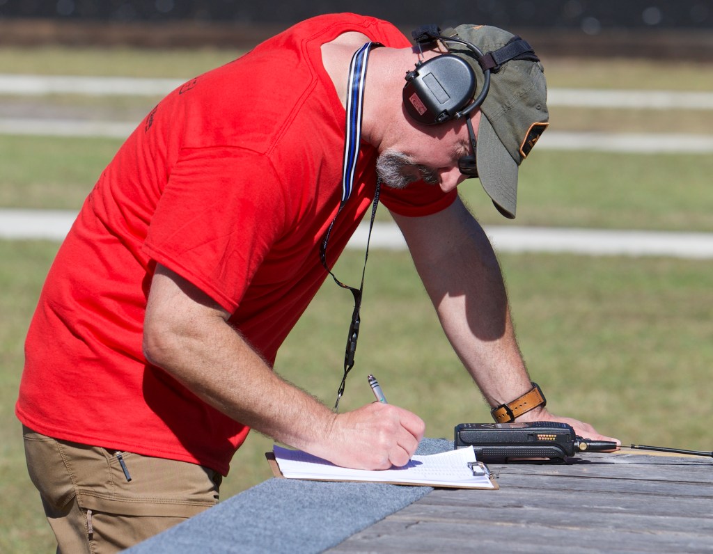 Team members discuss their game plan prior to the first event. Team members get final instructions from an event judge prior to the competition. And so it begins….The team waits for the second competition of the day…..The rifle raises up from the recoil as the spent shell casing flies past the front of the barrel……