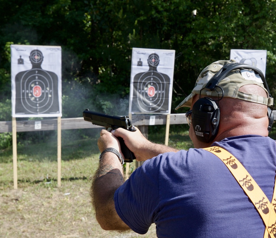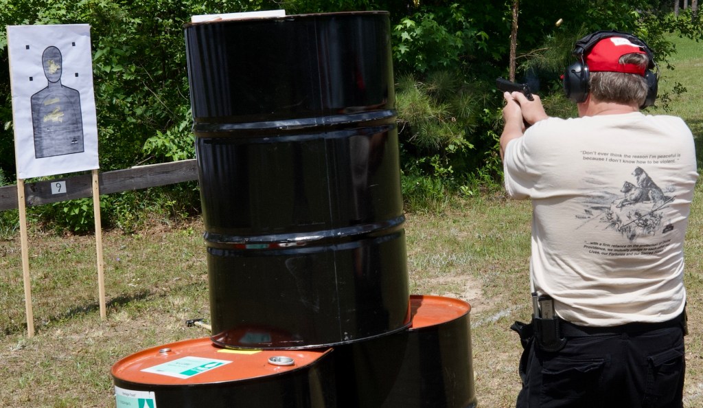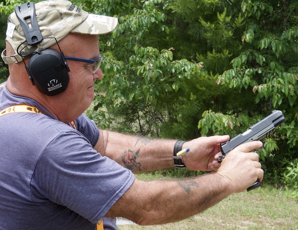 May God continue to Bless America! ‘Nuff said! Students were told to bring ammo a’plenty…..Some shootin’ was done…..The class began with working on basic shooting drills which are very important…and quickly went to more advanced drills….Thumbs were sore from loading mags! Students conducted various drills under the watchful eye of highly qualified instructors….Instructors evaluated student performance.Shooting was only part of the instruction. Students practiced failure drills among other things. 1911Failure Drills! Center Mass hits! Brass was in the air! Shooting under the watchful eye of the instructors! Sore fangers! Using drums for cover…Bud took a couple hits! Shooters practice using cover! Shooters make ready! Did you see that hit??? “Ocular!” Ammo!Nice Hits! Day 2 begins with instructions…..New day,…..new drills! Brass flies when the trigger is pulled!Rescuing the hostages! .45Move! Using cover! Red Dot…Big brass flies! Locked and Loaded! Room clearing…